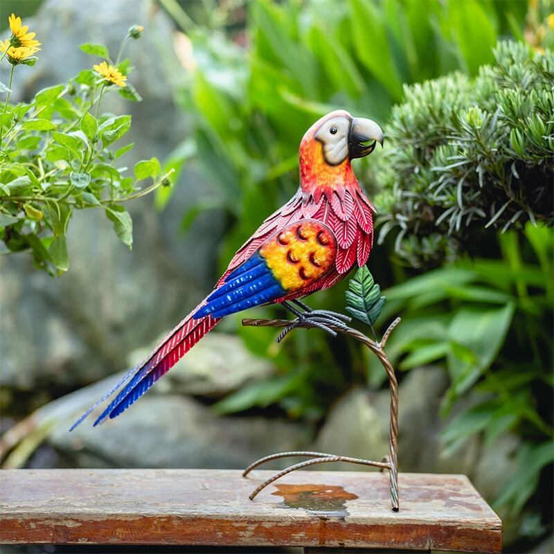 ガーデンオブジェ オウム 鉄製 ヴィンテージ調 赤 青 レッド ブルー 装飾品 アニマル ガーデニング 雑貨 ガーデン雑貨 ガーデンインテリア ガーデン インテリア 庭の装飾 お洒落 おしゃれ 8-14
