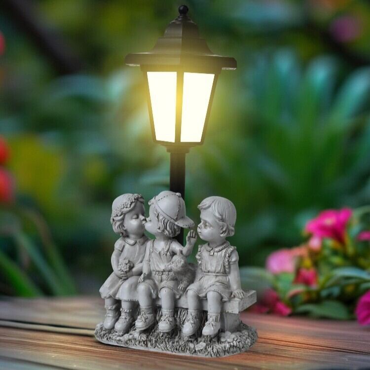 ガーデンライト「3人の子供」は、お洒落なデザインで、特に庭やガーデニングスペースにピッタリなアイテムです。ソーラー充電式のため、日中には太陽の光を集め、夜になると優しい光を放ちます。その温かみのある光は、訪れる人々に安らぎと安心感を与え、庭の雰囲気を一層引き立てます。