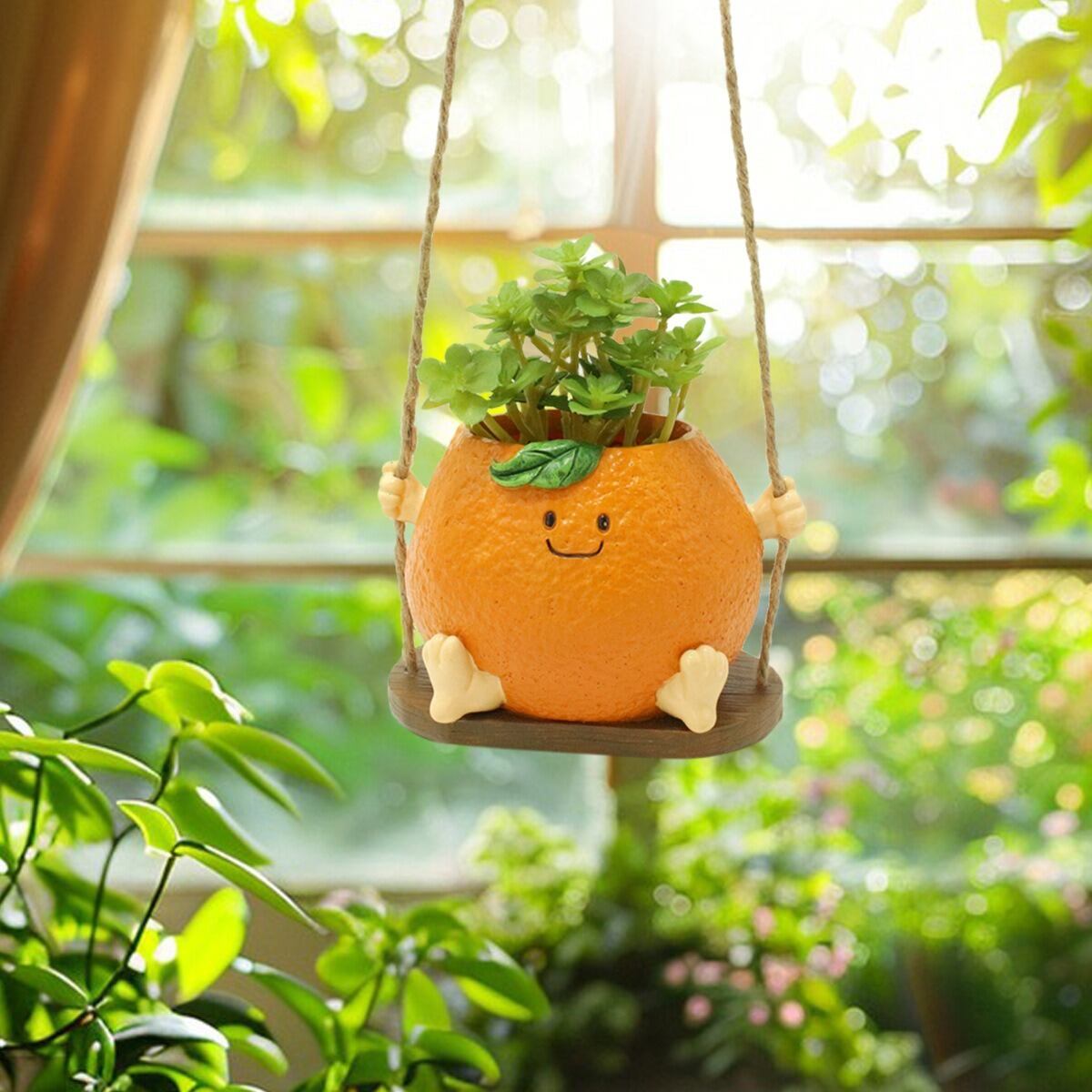 こちらの商品は、ユニークで愛らしいデザインが特徴のアイテムです。ブランコに乗るオレンジのキャラクターは、見ているだけで心を和ませてくれます。プランターとしてお花や多肉植物を飾ることができるのはもちろん、インテリアとして空間に楽しい雰囲気を添える存在です。