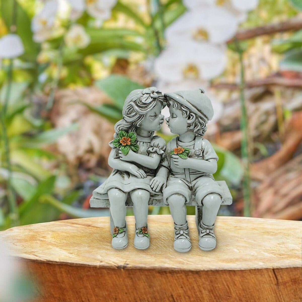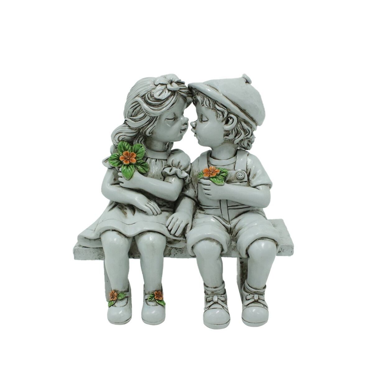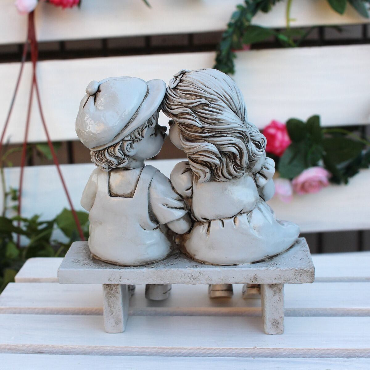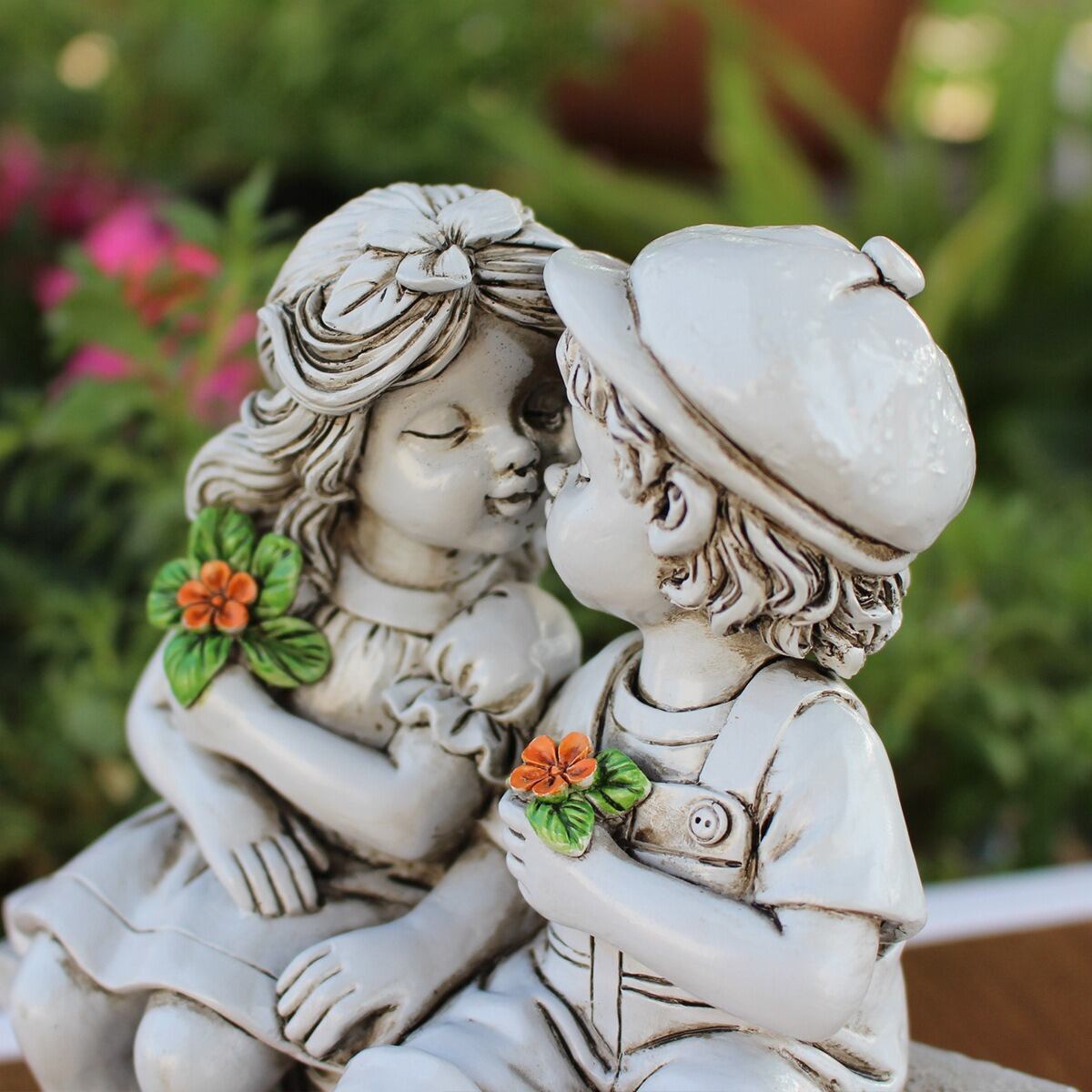 ガーデンオブジェ ベンチ 男の子 女の子 ヴィンテージ調 ホワイト かわいい キス 花 フラワー ガーデニング 雑貨 ガーデン雑貨 ガーデンインテリア ガーデン インテリア 庭の装飾 お洒落 おしゃれ 8-14