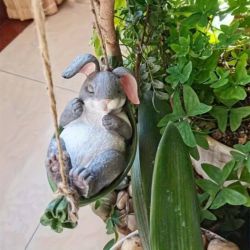 ガーデンオブジェ うさぎ 眠むる 吊るせる 樹脂 引っ掛け かわいい ラビット アニマル 動物 オーナメント ガーデニング 雑貨 ガーデン雑貨 ガーデンインテリア ガーデン インテリア 庭の装飾 お洒落 おしゃれ 4-7
