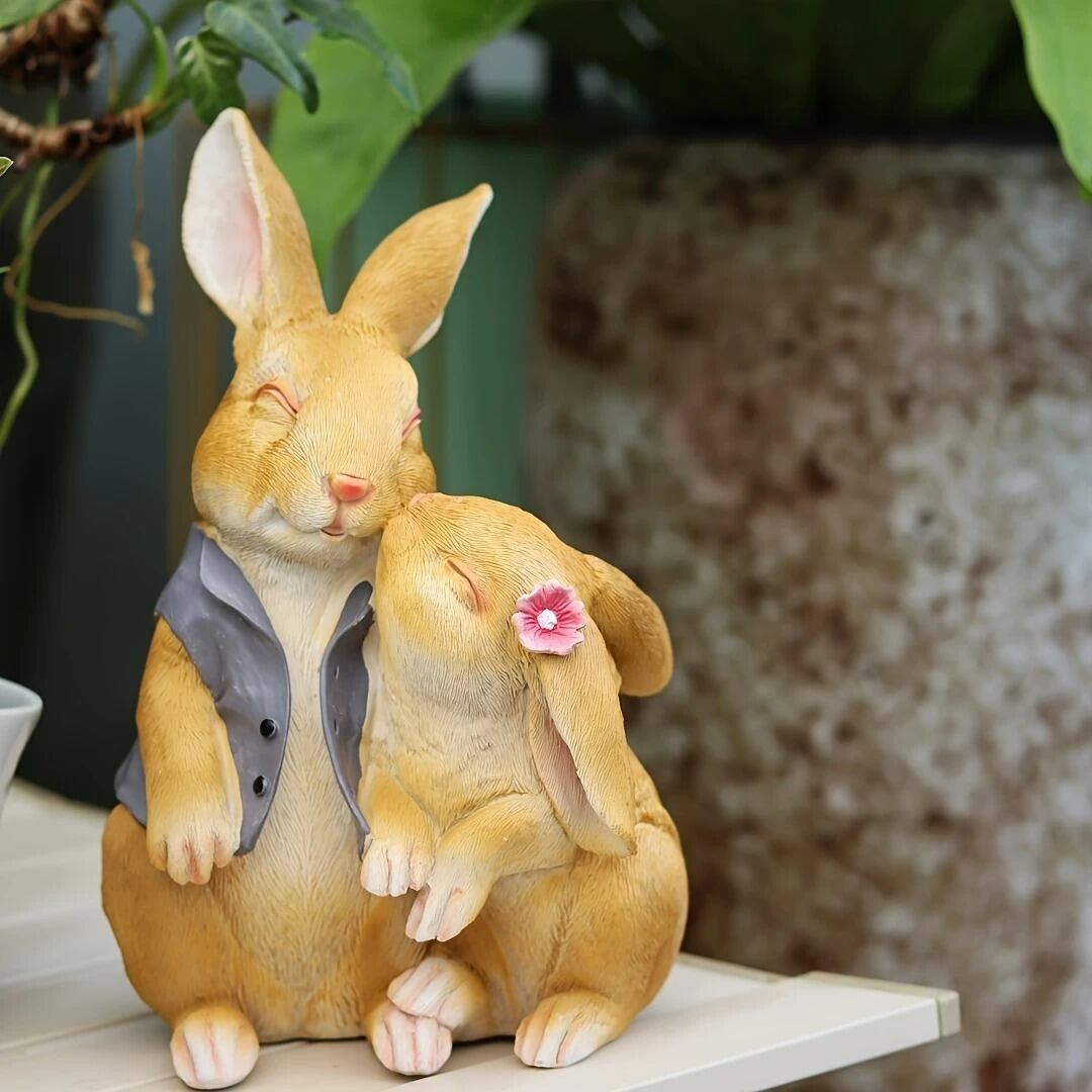 こちらのガーデンオブジェ は、自然に溶け込む可愛らしい樹脂製の置物です。仲睦まじいウサギのカップルは、愛や幸せを象徴し、見ているだけで心が温まる存在。庭やベランダに置くことで、穏やかな空間を演出し、癒しのひとときを提供します。