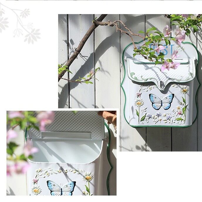 ポスト 蝶 ガーデンオブジェ ヴィンテージ調 ホワイト 緑色 鉄素材 郵便受け 鉄 バタフライ ガーデニング 雑貨 ガーデン雑貨 ガーデンインテリア ガーデン インテリア 庭の装飾 お洒落 おしゃれ 8-14