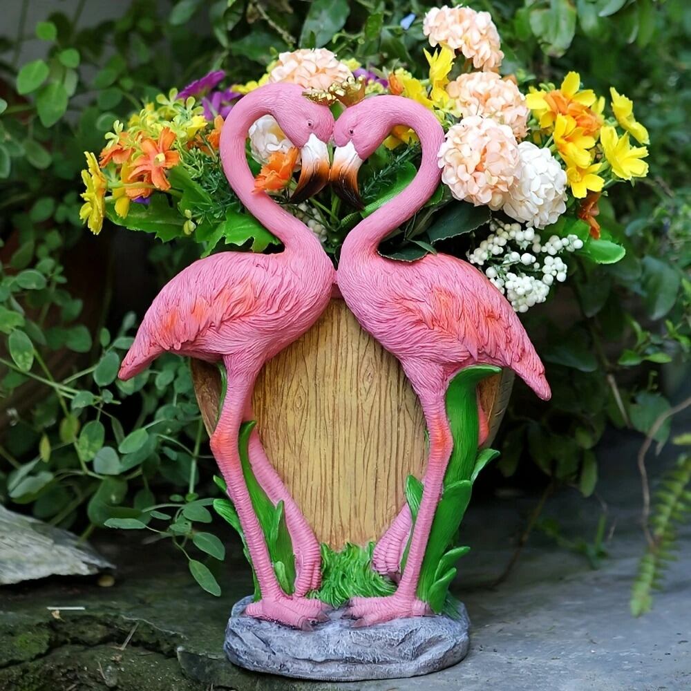 フラミンゴは、明るい色合いとユニークな形状により、見る人に元気をもたらし、リラックスした雰囲気を醸し出します。寄り添うフラミンゴの姿は、仲間や家族との絆を感じさせるとして、多くの方に親しまれています。お花や植物を植えることで、さらに生き生きとした表情を見せ、季節ごとのアレンジメントを楽しむことができます。