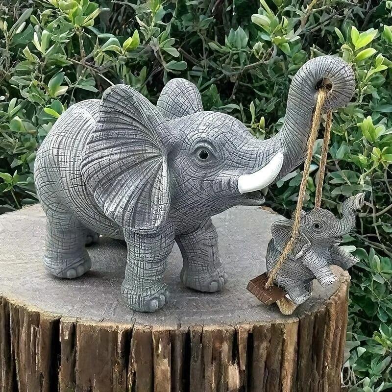 ガーデンオブジェ ゾウ 親子 ブランコ 樹脂 子ゾウ かわいい アニマル エレファント 動物 グレー 置物 ガーデニング 雑貨 ガーデン雑貨 ガーデンインテリア ガーデン インテリア 庭の装飾 お洒落 おしゃれ 4-7
