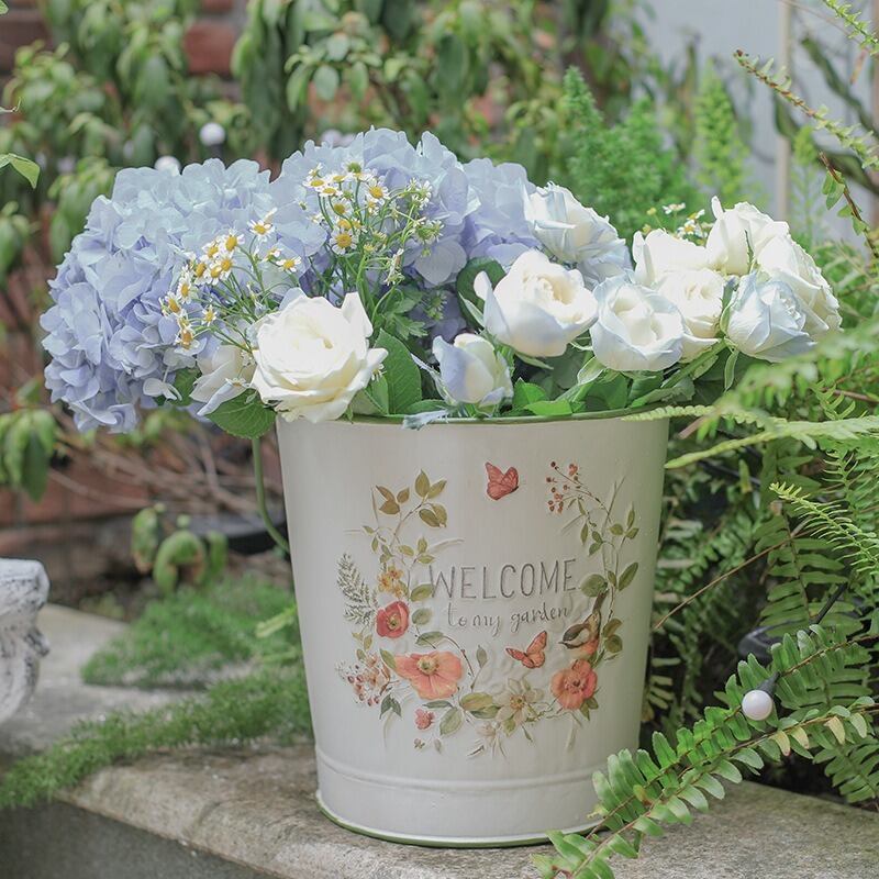このおしゃれなバケツは、観葉植物をはじめ、多目的に使用できます。小物入れとしても、ディスプレイ用としてもお楽しみいただけるアイテムです。特に、花を飾ることでお庭の景観をさらに引き立て、訪れる人々に温かみのある印象を与えることでしょう。