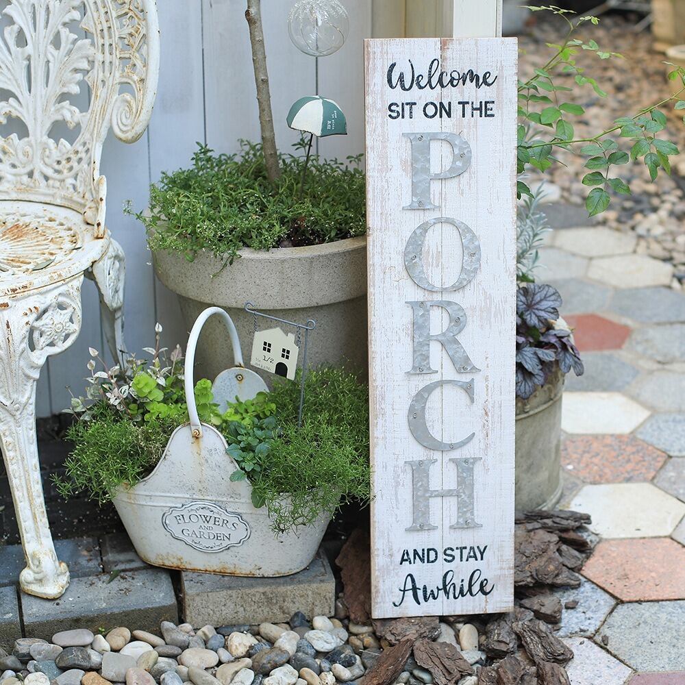 この看板は、庭の雰囲気をぐっと引き立てるアイテムで、自宅のガーデンやアウトドアスペースに特別なアクセントを加えることができます。お気に入りの植物やフラワーベッドの近くに配することで、訪れる人々に温かい印象を与えることでしょう。また、ご友人や家族を招待する際に、心地よい空間を演出する助けをしてくれます。