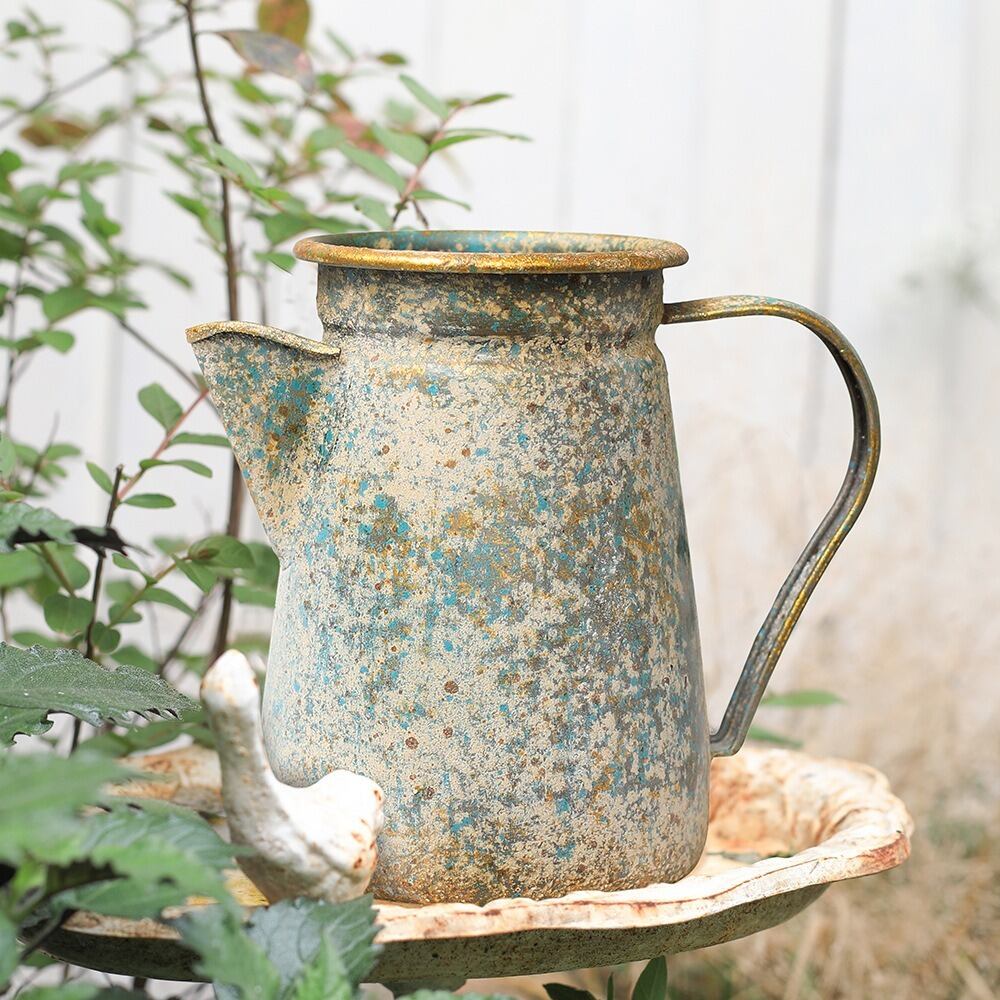 ガーデンオブジェ ヴィンテージ調 フラワーポット ブルー 庭 シャビー加工 シャビーシック エレガント ガーデニング 雑貨 ガーデン雑貨 ガーデンインテリア ガーデン インテリア 庭の装飾 お洒落 おしゃれ 8-14