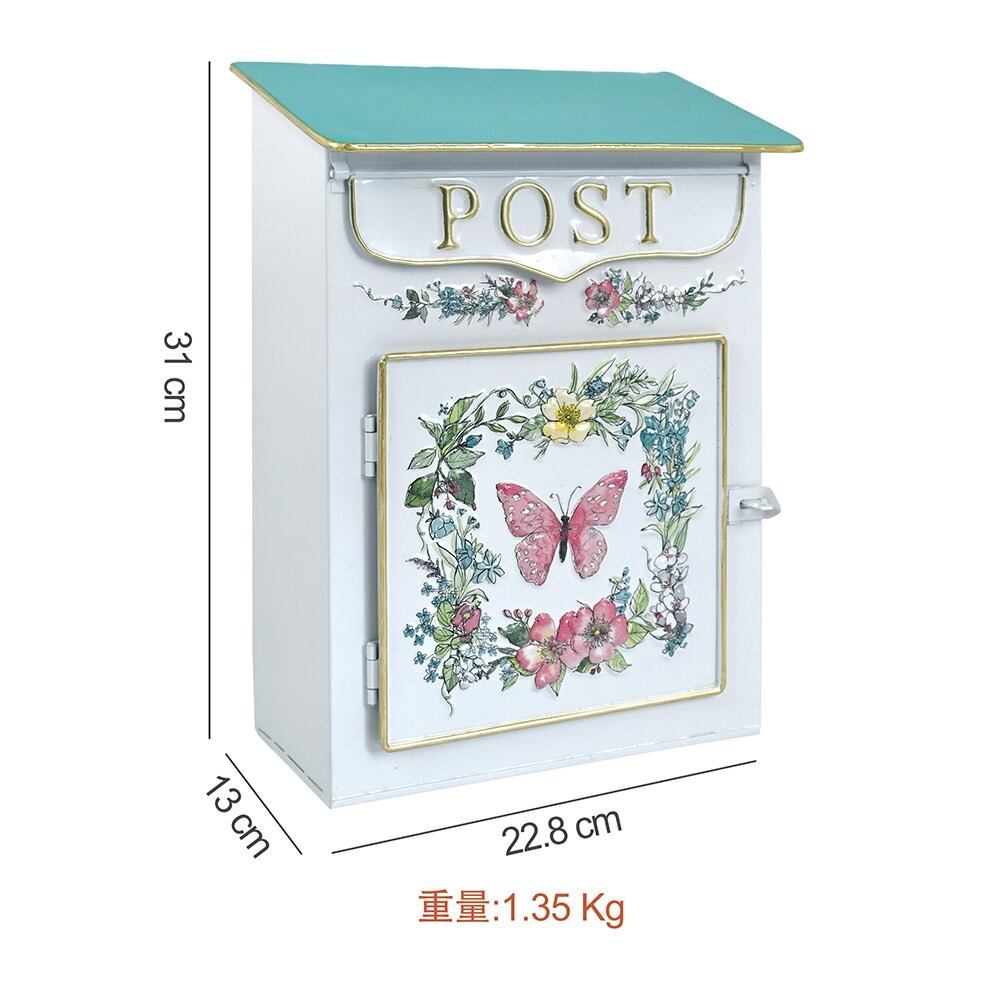 ポスト 蝶 ガーデンオブジェ ヴィンテージ調 ホワイト 水色 青色 鉄素材 郵便受け 鉄 バード ガーデニング 雑貨 ガーデン雑貨 ガーデンインテリア ガーデン インテリア 庭の装飾 お洒落 おしゃれ 8-14