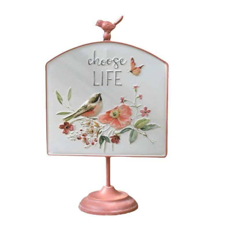 ガーデンサイン 鉄 看板 ピンク 鳥 ウェルカムサイン ヴィンテージ調 シャビーシック シャビー加工 ヨーロッパ風 ガーデニング 雑貨 ガーデン雑貨 ガーデンインテリア ガーデン インテリア 庭の装飾 お洒落 おしゃれ 8-14