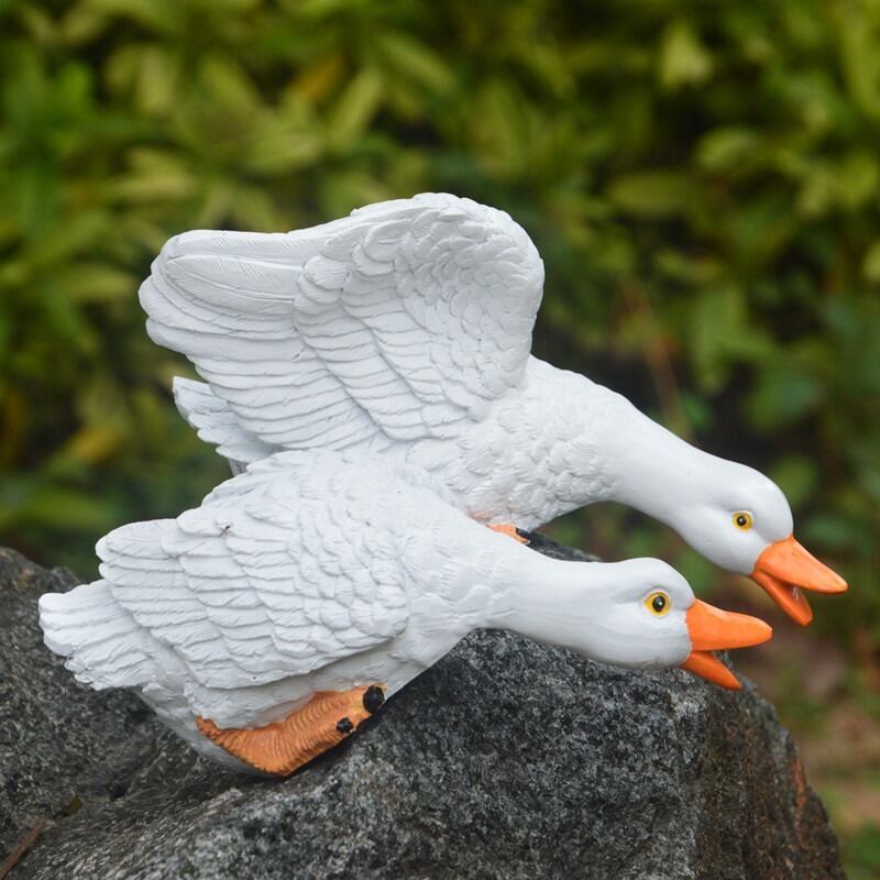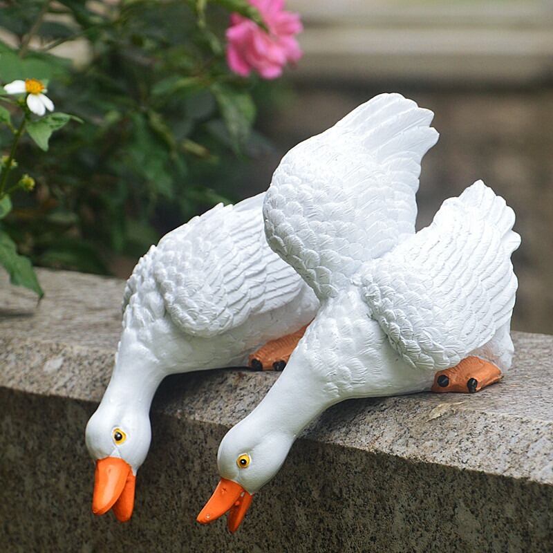 ガーデンオブジェ アヒル 樹脂 鳥 水鳥 ホワイト 2個セット かわいい アニマル ガーデニング 雑貨 ガーデン雑貨 ガーデンインテリア ガーデン インテリア 庭の装飾 お洒落 おしゃれ 8-14