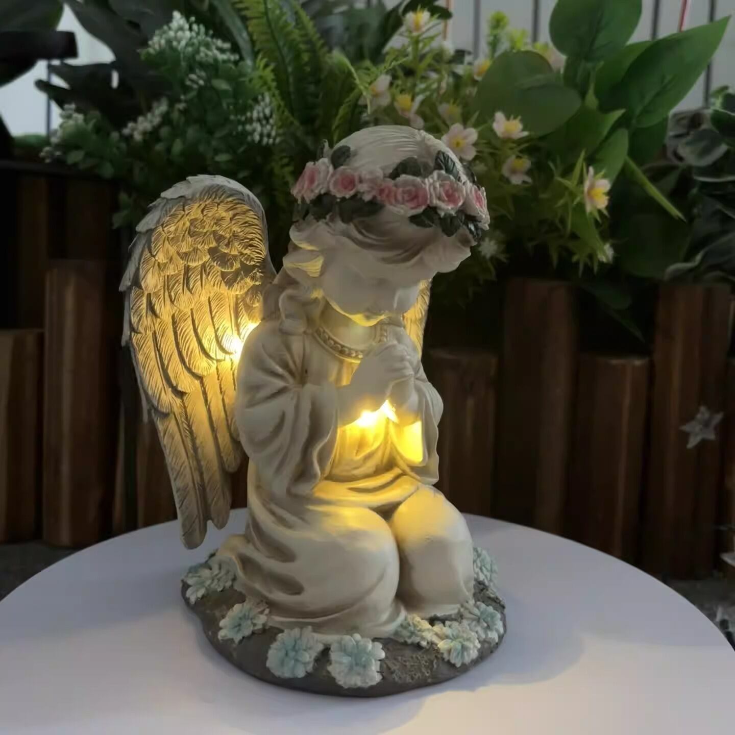 ソーラーライト 天使 かわいい 花冠 樹脂 祈る 女の子 屋外用 ガーデンライト ライト ホワイト ガーデニング 雑貨 ガーデン雑貨 ガーデンインテリア ガーデン インテリア 庭の装飾 お洒落 おしゃれ 8-14