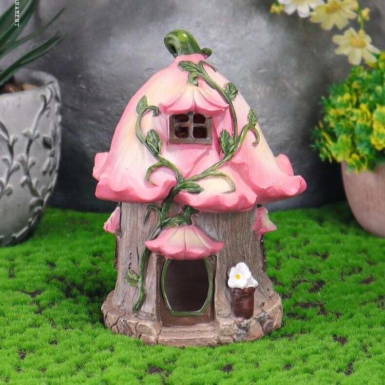 ガーデンライト 花 ハウス ソーラー フラワー 樹脂 ピンク かわいい ミニチュア 置物 オブジェ ガーデニング 雑貨 ガーデン雑貨 ガーデンインテリア ガーデン インテリア 庭の装飾 お洒落 おしゃれ 8-14
