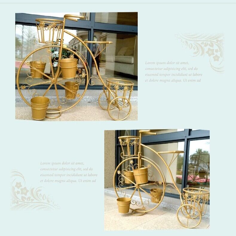 エレガントなデザインと優雅な雰囲気が調和した「自転車のデザインのフラワースタンド」。このフラワースタンドは、庭やバルコニーに華やかさを添えるだけでなく、6つの鉢植えを一度に設置できる機能性を誇ります。自転車の形状は、おしゃれでユニークなディスプレイを実現し、見る人に喜びを与えてくれることでしょう。