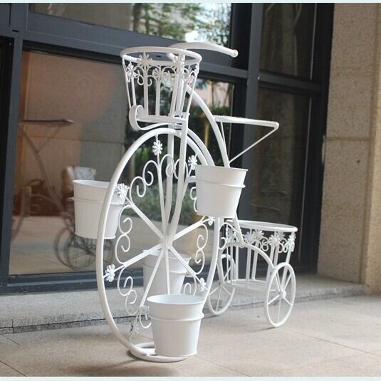 フラワースタンド プランタースタンド ラック 自転車 鉄製 エレガント 庭 ホワイト ゴールド グリーン 金 白 緑 ガーデニング 雑貨 ガーデン雑貨 ガーデンインテリア ガーデン インテリア 庭の装飾 お洒落 おしゃれ 8-14
