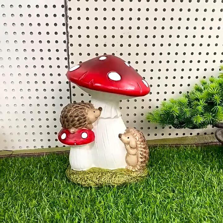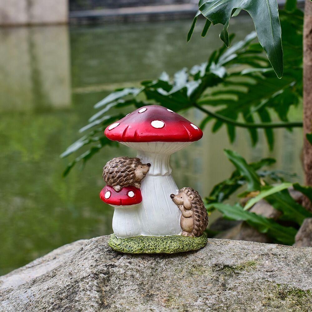 キノコとハリネズミは、自然界の中で重要な役割を果たす存在であり、このオブジェはそれらの生き物たちの可愛らしさを象徴しています。特に、子どもや家族で楽しめるインテリアとして、ほっこりとした時間を演出することができるでしょう。また、ほんのりとした温もりをもったデザインは、ガーデニングやアウトドアの楽しみに新たなアクセントを加えてくれます。