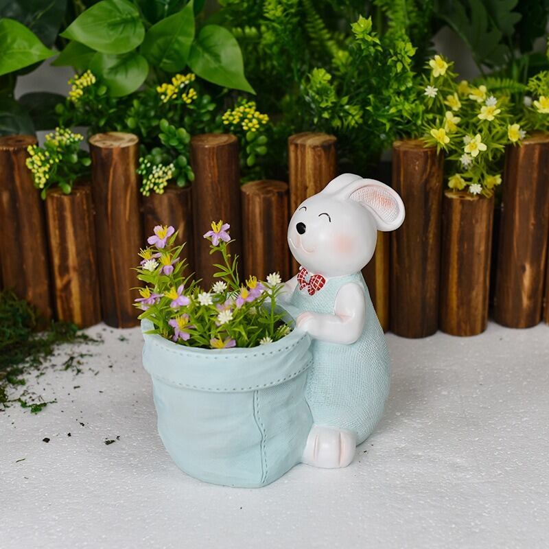 プランター うさぎ 樹脂 植木鉢 イエロー ブルー 水色 黄色 かわいい ラビット ガーデニング 雑貨 ガーデン雑貨 ガーデンインテリア ガーデン インテリア 庭の装飾 お洒落 おしゃれ 8-14