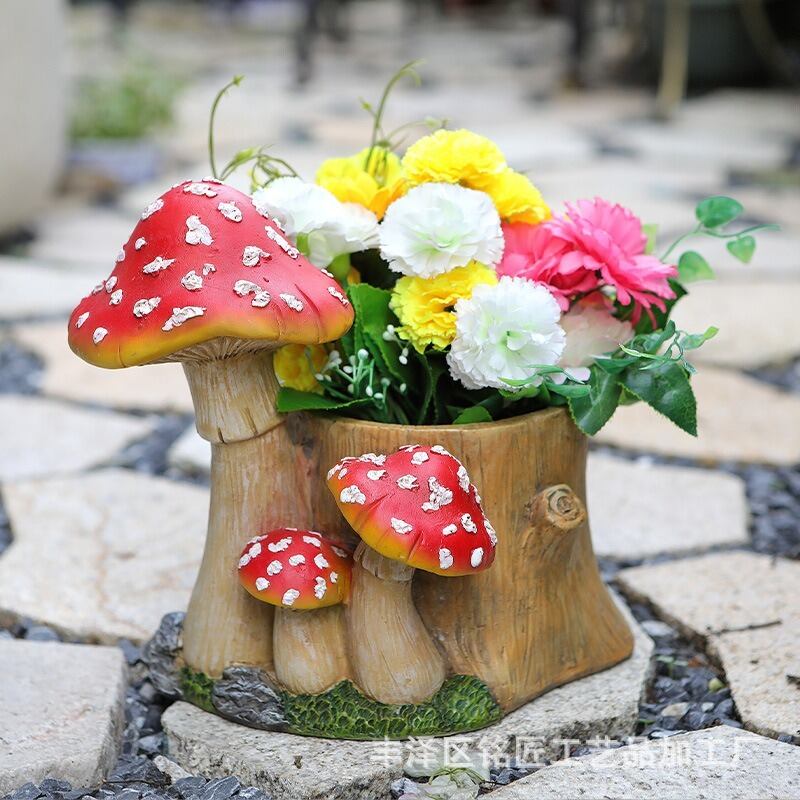 このプランターは、機能性とデザイン性を兼ね備えています。日中の明るいオレンジや赤のキノコは、緑の植物とのコントラストが非常に映え、インテリアとしても楽しむことができます。また、しっかりとした素材でできているため、耐候性にも優れており、屋外での使用に最適です。