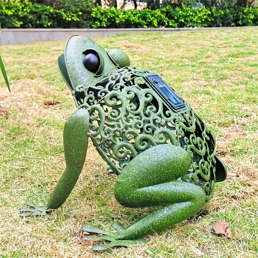 こちらは、愛らしいカエルのデザインを取り入れた金属製のガーデンライトです。ソーラー充電機能を備え、昼間に太陽光を吸収し、夜になると優しい光を放つため、庭やベランダを一層魅力的に演出してくれます。カエルの姿がほのぼのとした雰囲気を醸し出し、ただの照明以上に、空間に楽しいアクセントを加えてくれる一品です。