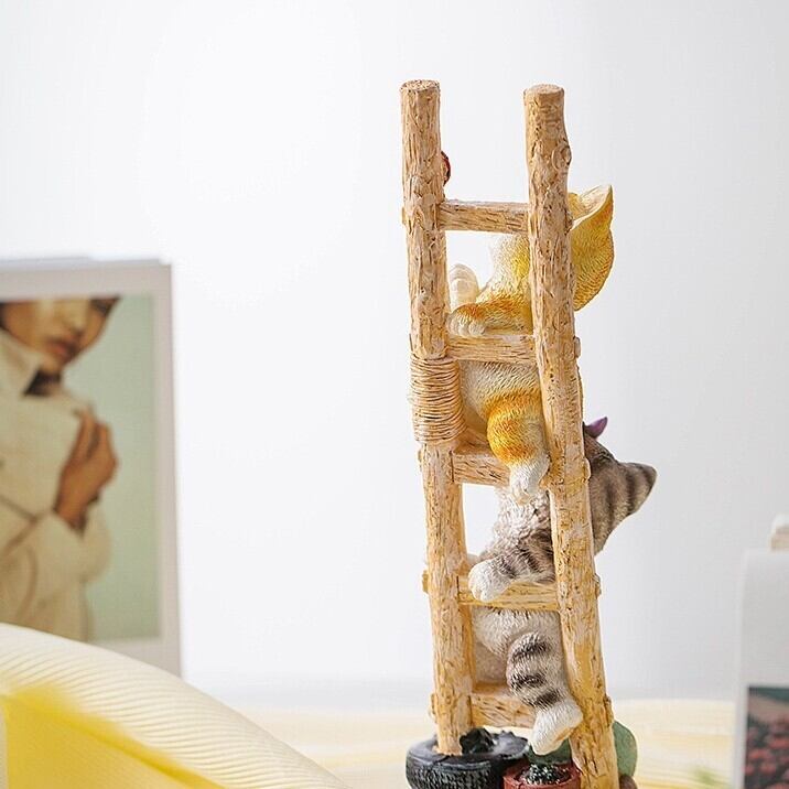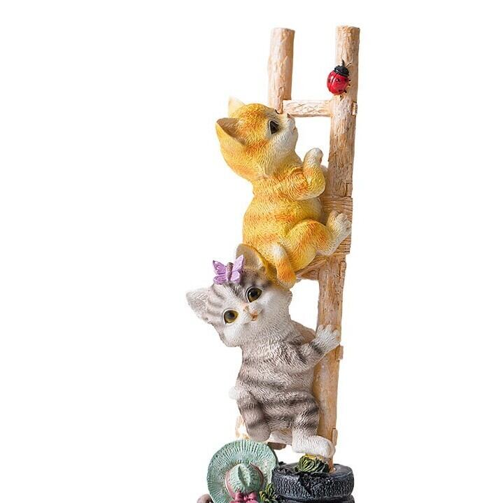 こちらは、可愛らしい二匹の猫がはしごを登る姿を表現した、樹脂製のガーデンオブジェです。精巧な造形と温かみのある色合いが、あなたの庭やベランダにほっこりとした雰囲気をもたらしてくれる一品です。猫たちの表情やポーズには愛らしさが溢れ、見る人の心を和ませることでしょう。