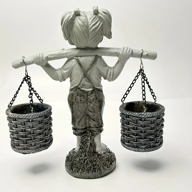 こちらは、かわいらしい女の子のデザインが特徴のコンパクトなプランターです。樹脂製で軽量ながらも耐久性があり、お庭やベランダ、室内のインテリアとしてもご利用いただけます。花を2つ入れることができ、色とりどりの植栽が楽しめる素敵なアイテムです。