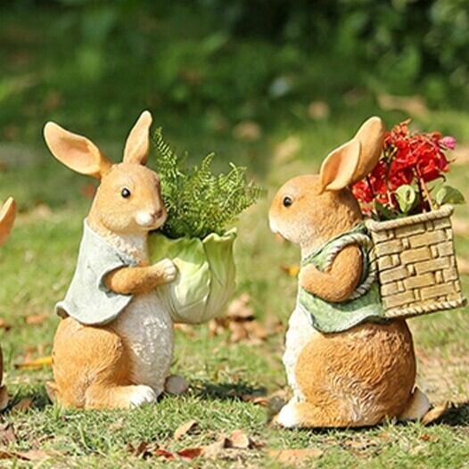 こちらは、可愛らしいうさぎをモチーフにした樹脂製のプランターです。リアルな造形と柔らかな色合いは、庭やバルコニーに幸せな雰囲気をもたらしてくれます。うさぎの愛らしい表情と、愛らしいポーズが、日々の暮らしに温かみを与える存在となるでしょう。
