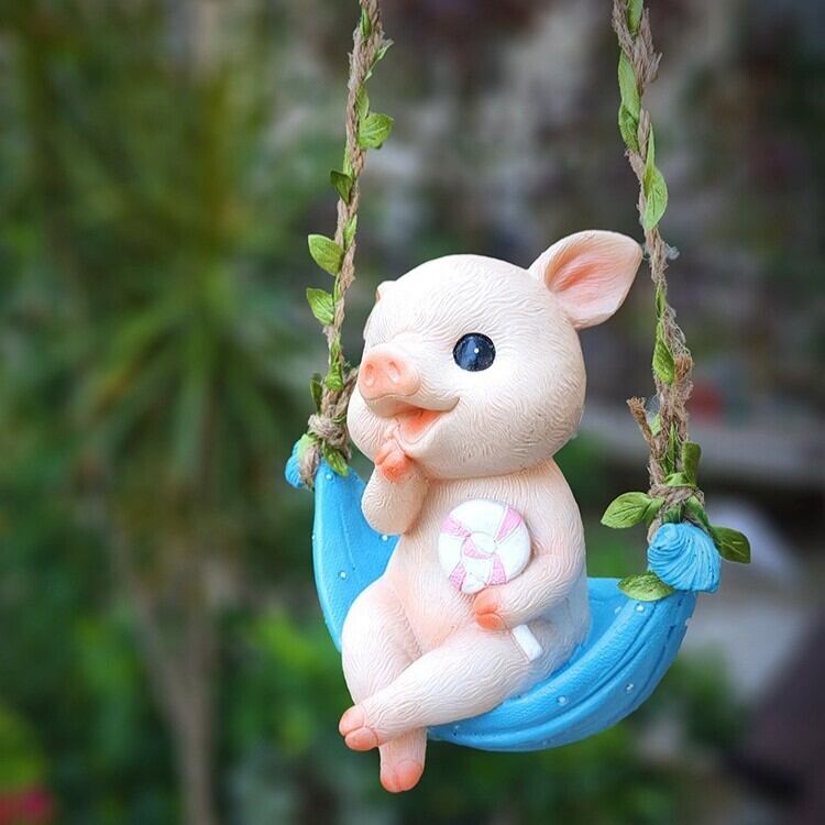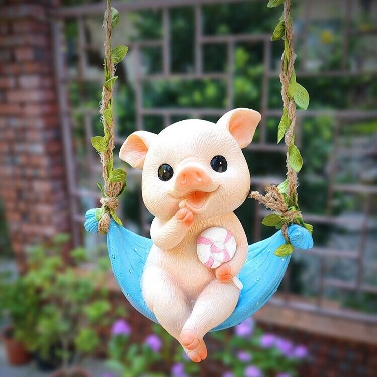 ガーデンオブジェ ぶた 豚 ハンモック ブランコ ゆらゆら 揺れる 樹脂 かわいい アニマル 動物 オーナメント 引っ掛け ガーデニング 雑貨 ガーデン雑貨 ガーデンインテリア ガーデン インテリア 庭の装飾 お洒落 おしゃれ 8-14