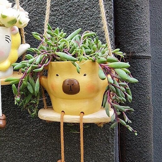 プランター カピバラ ハンキング かわいい アニマル デザイン 樹脂 動物 ユニーク 引っ掛けられる 吊るす ガーデニング 雑貨 ガーデン雑貨 ガーデンインテリア ガーデン インテリア 庭の装飾 お洒落 おしゃれ 8-14