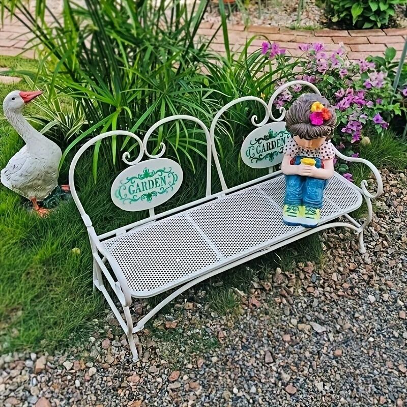 ガーデンベンチ ヴィンテージ調 ヨーロピアンスタイル ホワイト グリーン 金属 メタル 庭 エレガント ガーデニング 雑貨 ガーデン雑貨 ガーデンインテリア ガーデン インテリア 庭の装飾 お洒落 おしゃれ 4-7