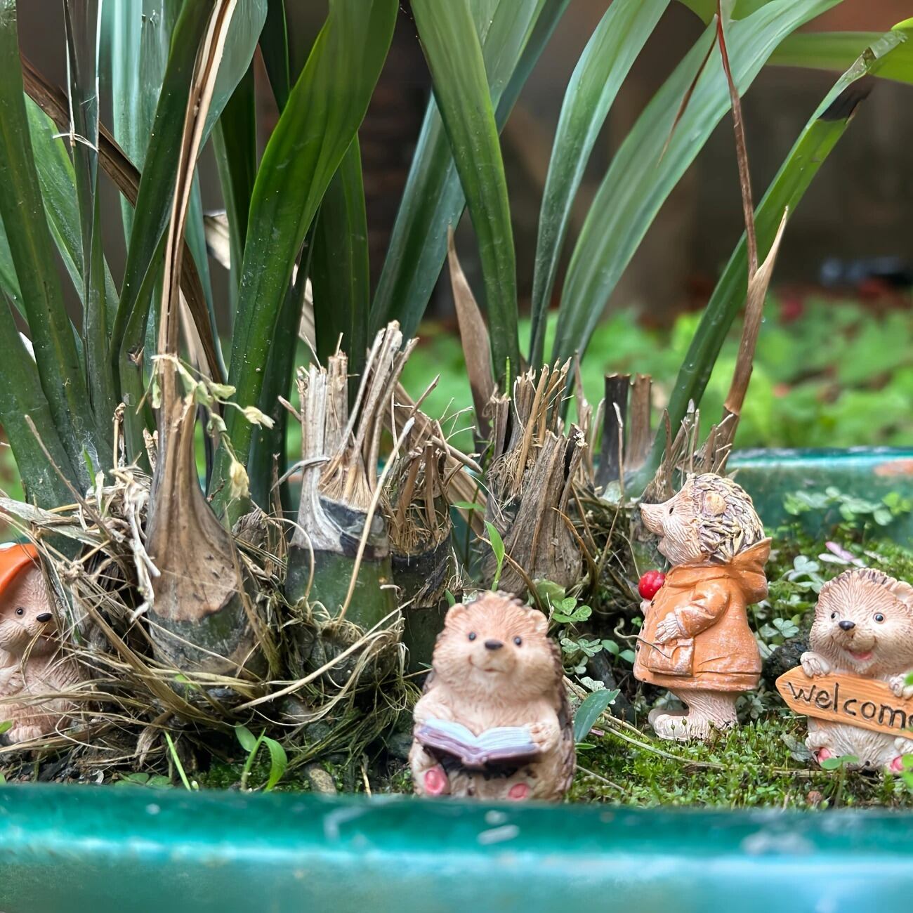 ガーデンオブジェ ハリネズミ 4個セット 家族 樹脂 ミニフィギュア かわいい キノコ きのこ 置物 ガーデニング 雑貨 ガーデン雑貨 ガーデンインテリア ガーデン インテリア 庭の装飾 お洒落 おしゃれ 4-7