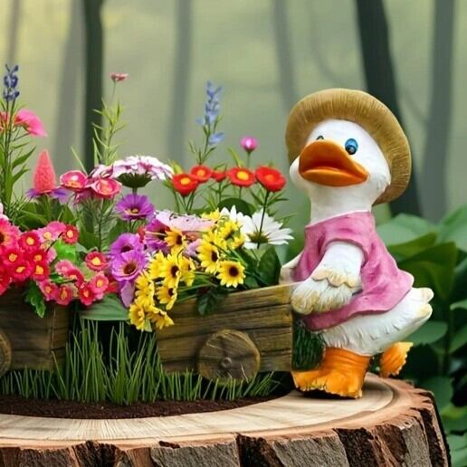 こちらは、愛らしいアヒルが麦わら帽子をかぶった、樹脂製のプランターです。ユーモラスなデザインと鮮やかな色合いは、あなたのお庭やベランダを一段と華やかに彩ります。アヒルの丸みを帯びたフォルムは、どんな場所でも癒しの空間を演出してくれることでしょう。