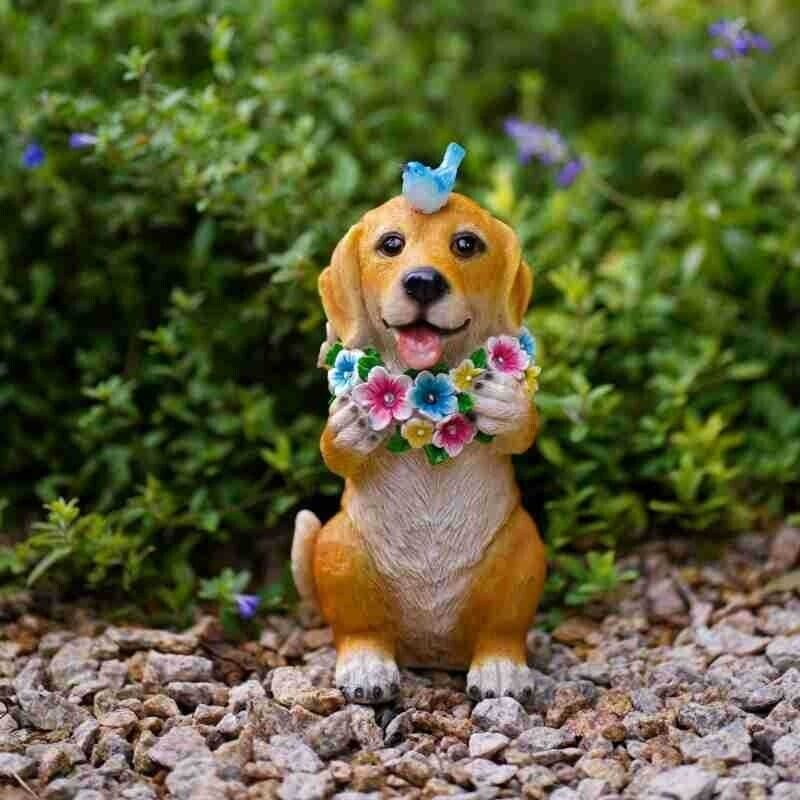 ガーデンライト 犬 お花 樹脂 ドッグ かわいい アニマル いぬ イヌ フラワー ソーラー 照明 太陽光 ガーデニング 雑貨 ガーデン雑貨 ガーデンインテリア ガーデン インテリア 庭の装飾 お洒落 おしゃれ 8-14
