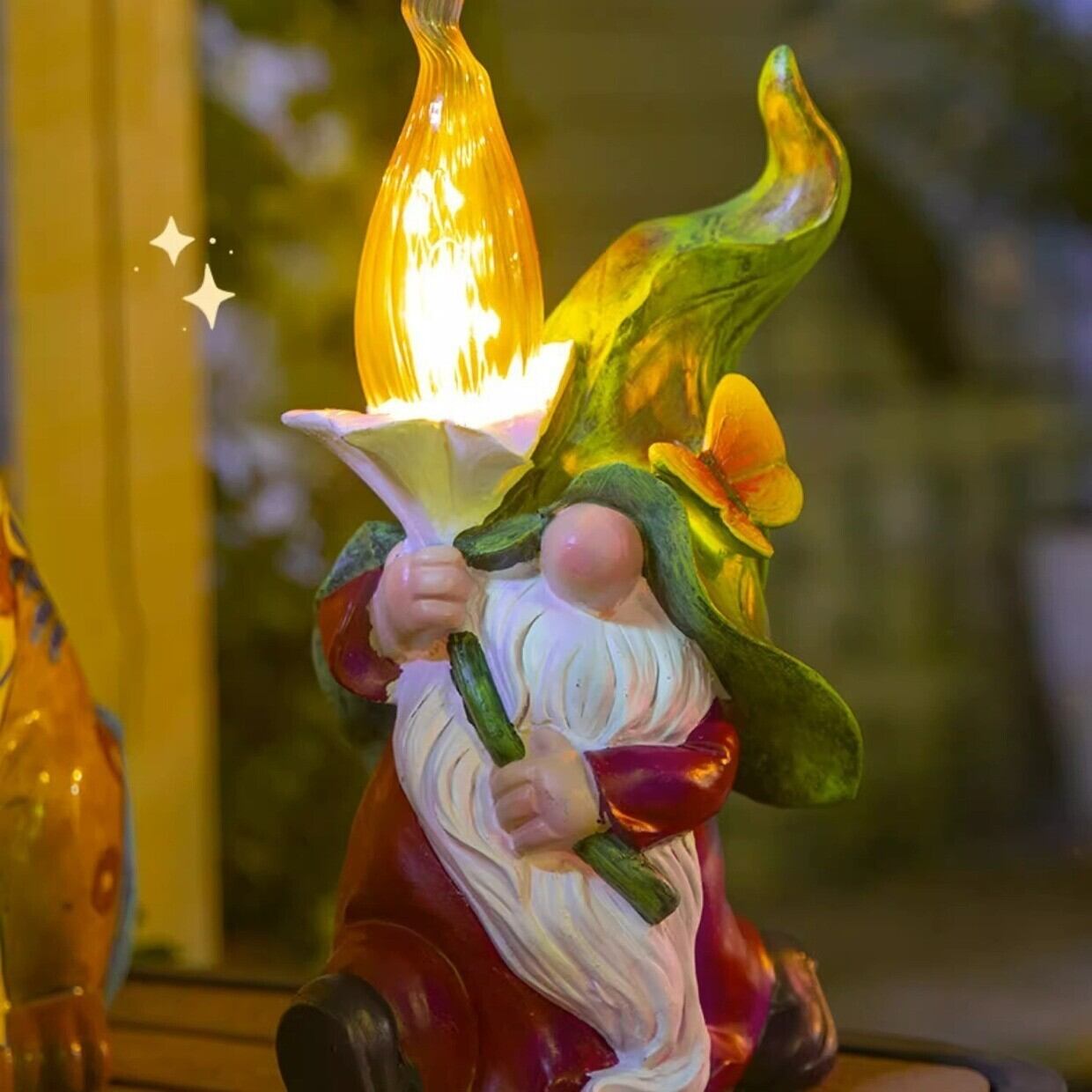 こちらは、可愛らしいノームのデザインが特徴のガーデンライトです。樹脂製の本品は、太陽光で充電ができるソーラータイプで、昼間は自然な明るさを保ちながら、夜になると幻想的な光を放つため、庭やベランダを華やかに演出してくれます。ノームは北欧の神話や伝説に登場する妖精で、庭を守護する存在として親しまれています。その姿は愛らしく、見る人に心温まる印象を与えることでしょう。