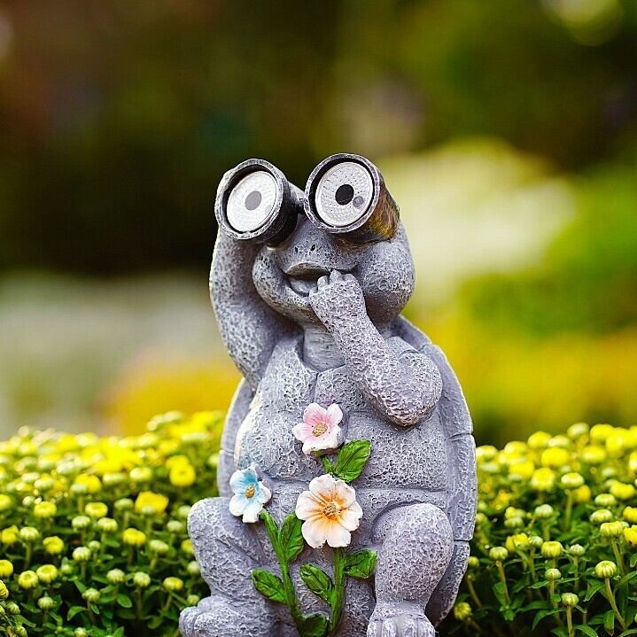 こちらは、かわいらしいカメのソーラーガーデンライトです。庭やベランダを彩るだけでなく、夜間に美しい光を放つことで、幻想的な雰囲気を演出します。日中は太陽光をしっかりと吸収し、暗くなるとその光を放つため、エコでありながら魅力的なアイテムとなっています。