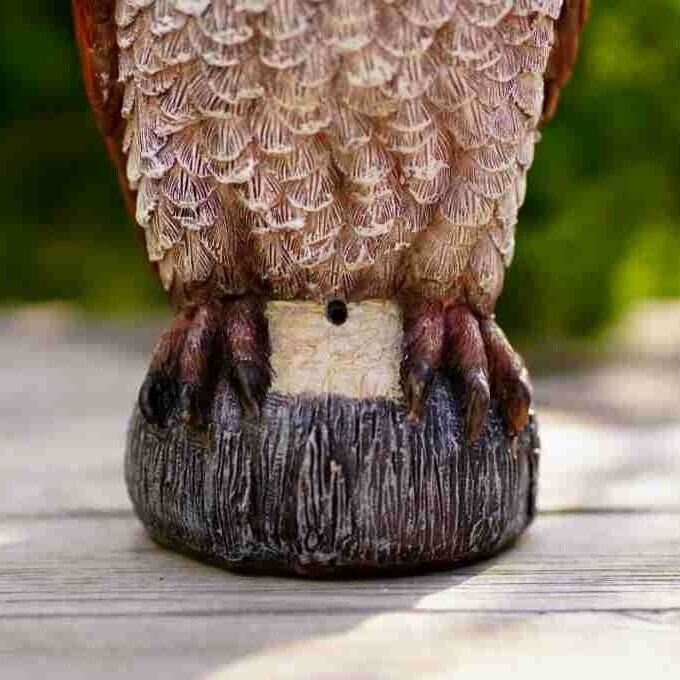こちらは癒しの象徴として人気の、ふくろうデザインのソーラーガーデンライトです。樹脂製の本体は、あたたかみのある風合いで庭やバルコニーを飾り、夜間には優しい光を放つことで、幻想的な雰囲気を作り出します。ふくろうは「知恵」と「幸運」を象徴する生き物であり、この商品はただの装飾品ではなく、心を豊かにしてくれる存在としても大いに歓迎されることでしょう。