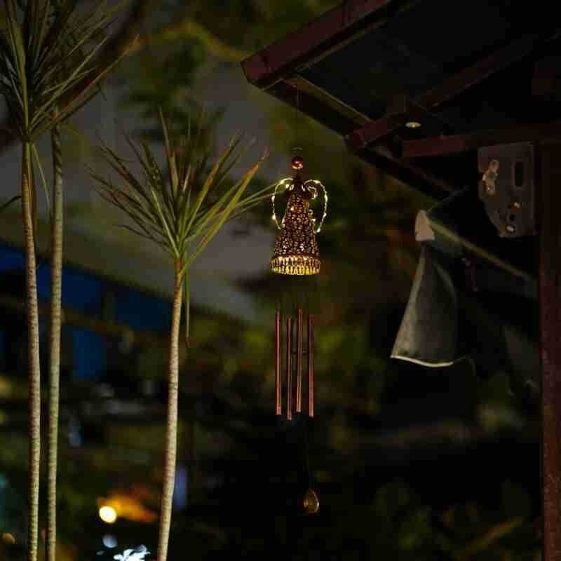 こちらは、レトロな雰囲気を持つ樹脂製の「ウィンドチャイム ソーラーライト」です。昼間には太陽の光を吸収し、夜になると幻想的な光を放つこのアイテムは、庭やテラス、バルコニーに置くことで、穏やかな光が心地よい空間を生み出します。