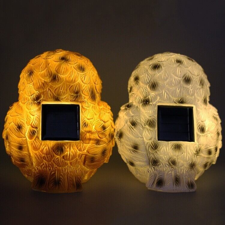 こちらは癒しの象徴として人気の、ふくろうデザインのソーラーガーデンライトです。樹脂製の本体は、あたたかみのある風合いで庭やバルコニーを飾り、夜間には優しい光を放つことで、幻想的な雰囲気を作り出します。ふくろうは「知恵」と「幸運」を象徴する生き物であり、この商品はただの装飾品ではなく、心を豊かにしてくれる存在としても大いに歓迎されることでしょう。