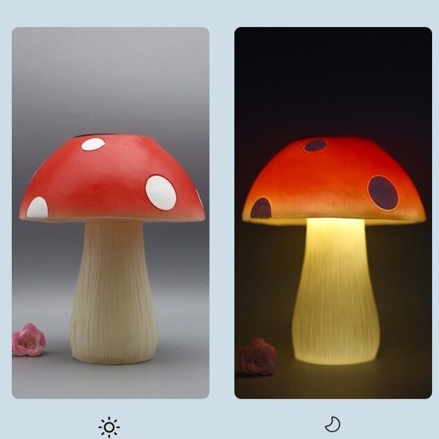 こちらは、庭を彩る可愛らしい赤いきのこの形をしたソーラーガーデンライトです。自然の中に溶け込むデザインが特徴で、日中は太陽の光を吸収し、夜になると柔らかな光を放ち、幻想的な雰囲気を演出してくれます。庭やバルコニーはもちろん、玄関や花壇などに置くことで、単なる照明だけではなく、空間にアクセントを加える存在にもなります。