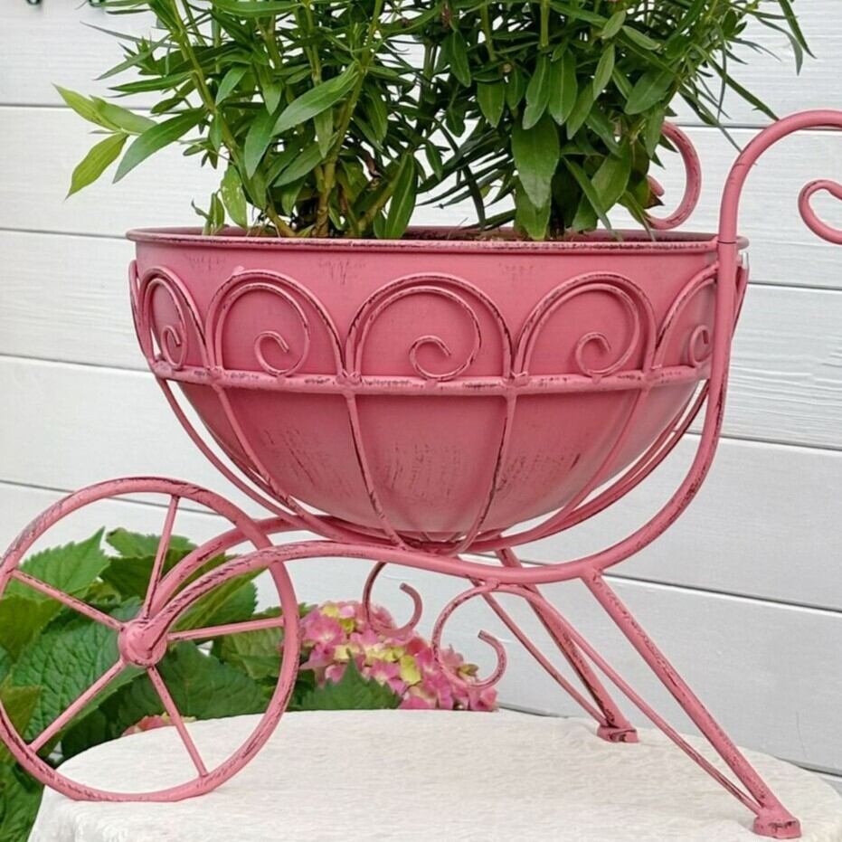 メタルアイアンで丁寧に作られたフラワーポットスタンドです。このスタンドは、自転車の形をしたユニークなデザインが特徴で、庭やバルコニーに素敵なアクセントを加えます。ピンクのカラーリングは優雅さと可愛らしさを演出し、観葉植物やお花を引き立てる素晴らしいアイテムです。