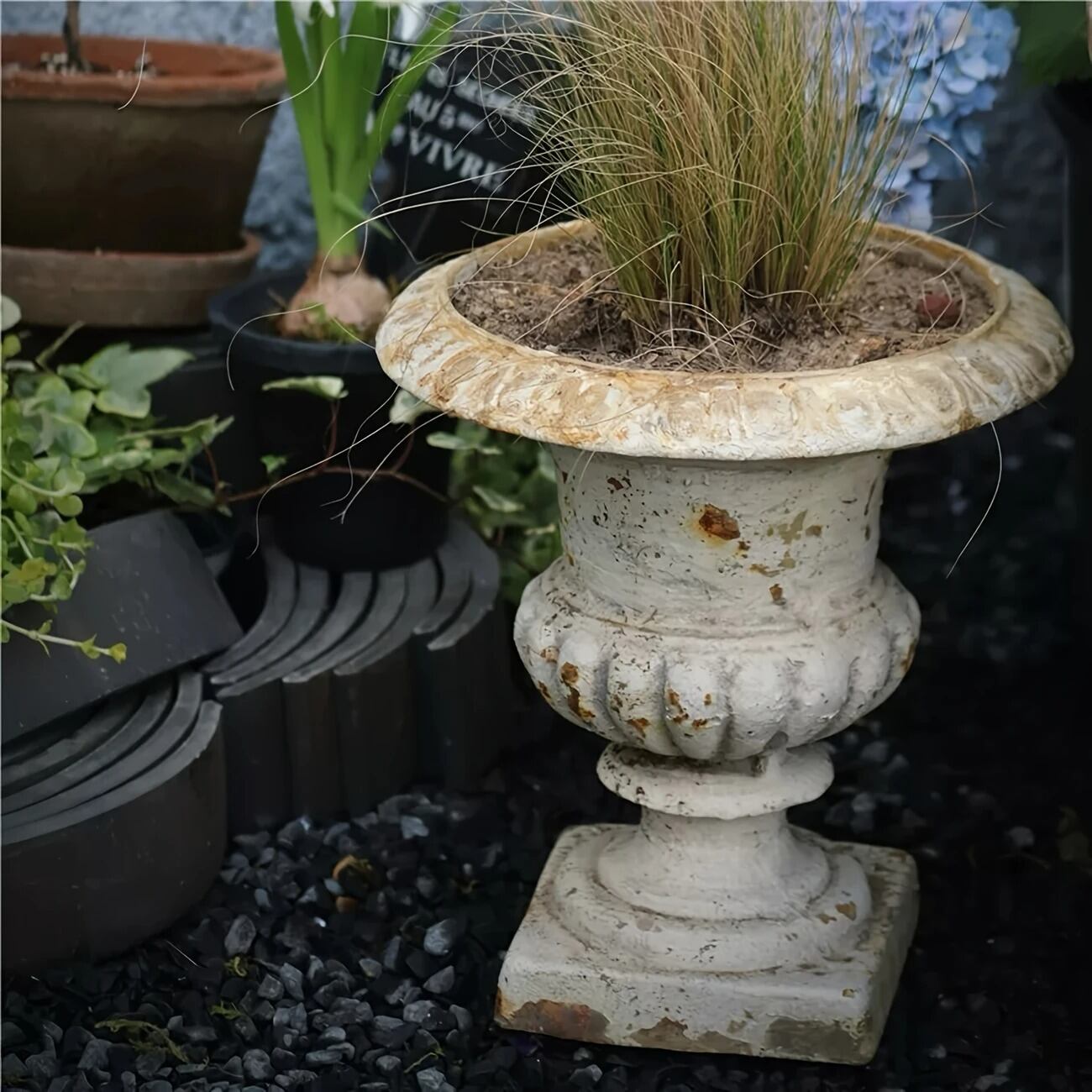 ヴィンテージ調のフラワーポットは、古典的なデザインが魅力的なアイテムです。ローマ文化を彷彿とさせる美しいフォルムは、庭やベランダに置くことで、瞬時に豊かな雰囲気を演出します。このポットは、お花や植物を引き立てながら、どんなライティングでもその存在感を発揮します。