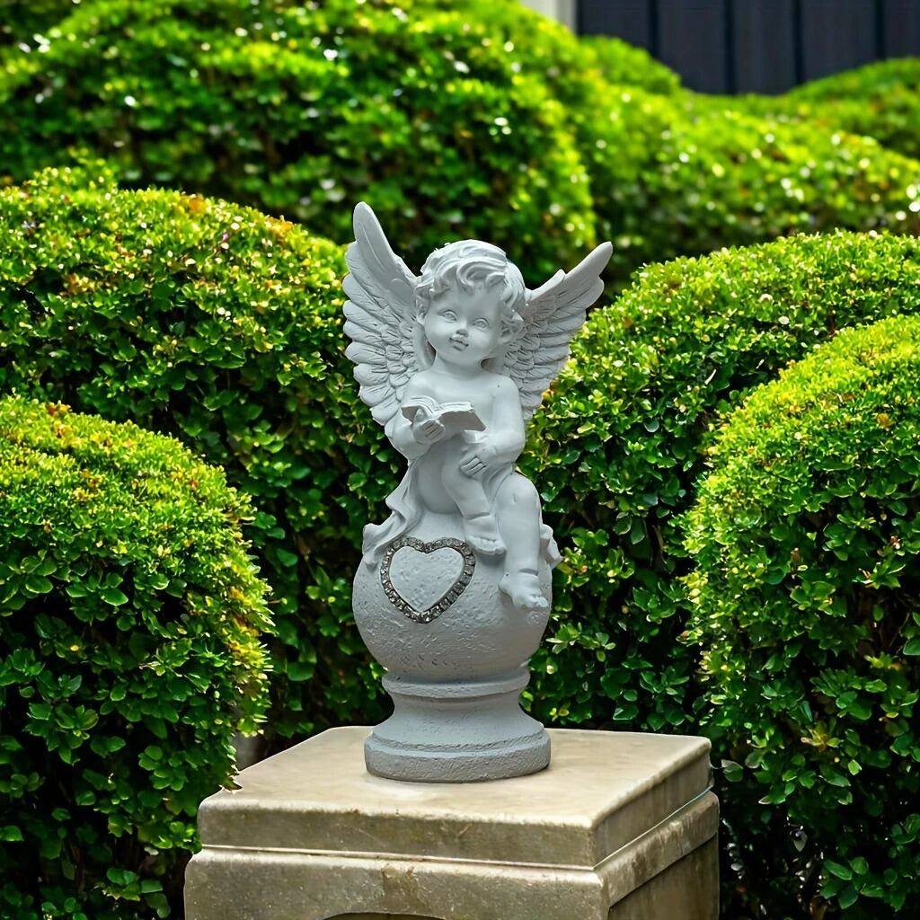 かわいいハートと天使をかたどったガーデンオブジェです。天使は守護と愛の象徴とされ、空間に温かさと優しさをもたらす存在として古くから人々に親しまれてきました。特に、庭やインテリアに飾ることで、心の安らぎや幸福感を引き寄せると言われています。