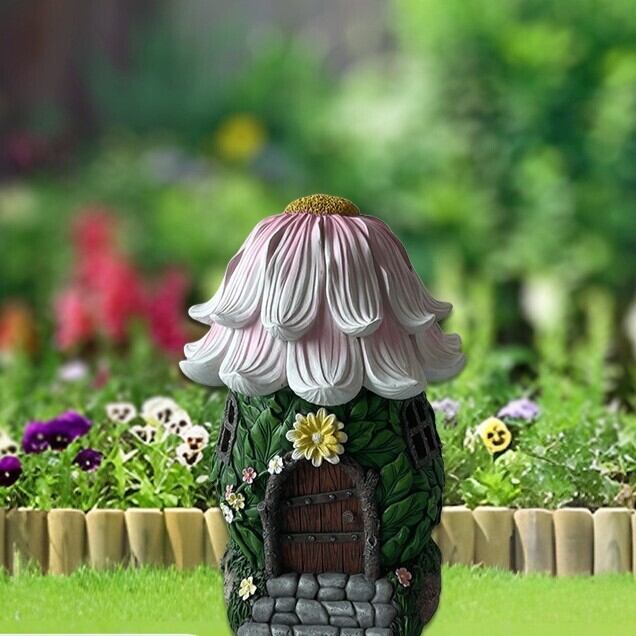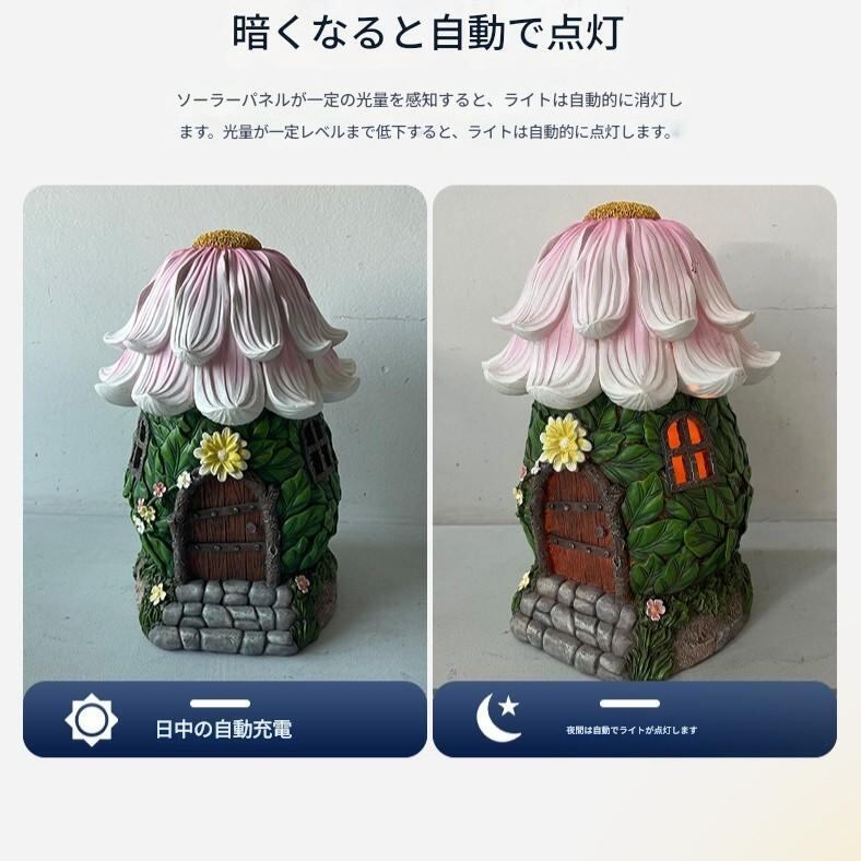ガーデンライト 家 花 フラワー ミニチュア 樹脂 ソーラー ガーデンランプ 照明 太陽光 オブジェ かわいい ガーデニング 雑貨 ガーデン雑貨 ガーデンインテリア ガーデン インテリア 庭の装飾 お洒落 おしゃれ 8-14