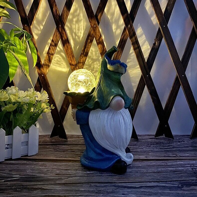 こちらは、可愛らしいノームのデザインが特徴のガーデンライトです。樹脂製の本品は、太陽光で充電ができるソーラータイプで、昼間は自然な明るさを保ちながら、夜になると幻想的な光を放つため、庭やベランダを華やかに演出してくれます。ノームは北欧の神話や伝説に登場する妖精で、庭を守護する存在として親しまれています。その姿は愛らしく、見る人に心温まる印象を与えることでしょう。