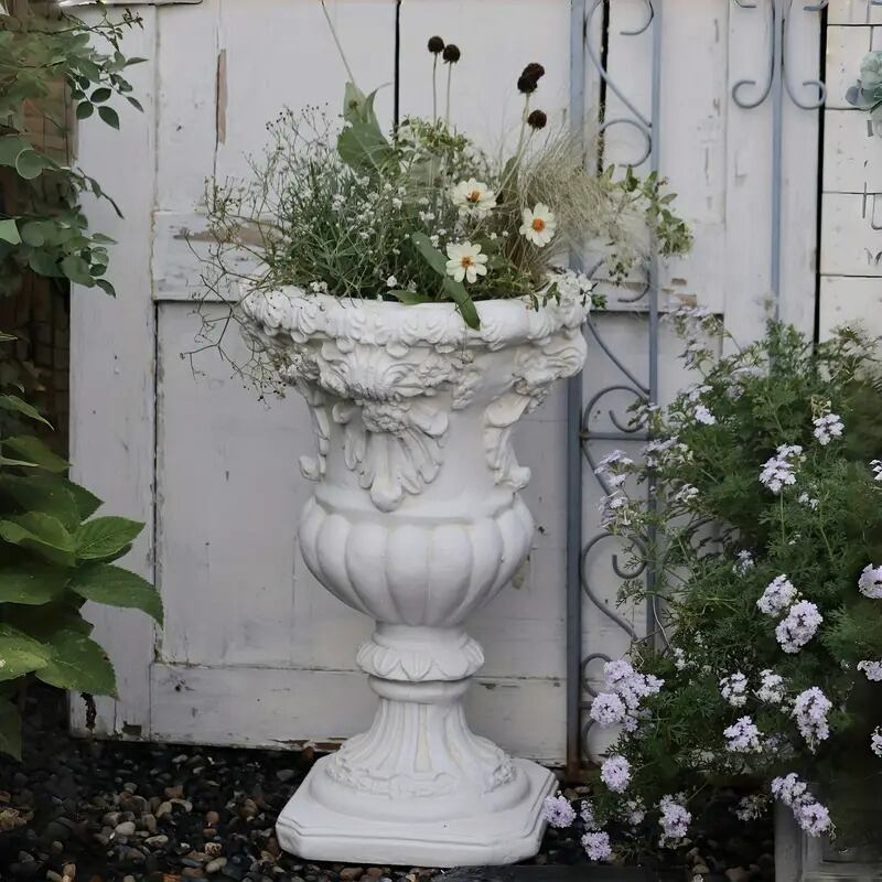 プランター ローマ風 ホワイト ヴィンテージ調 排水穴付き 庭 シャビーシック シャビー加工 白 エレガント 酸化マグネシウム ガーデニング 雑貨 ガーデン雑貨 ガーデンインテリア ガーデン インテリア 庭の装飾 お洒落 おしゃれ 4-7