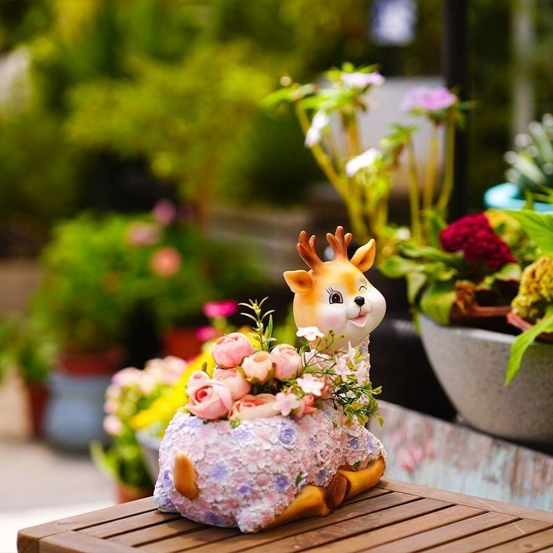 プランター 鹿 花 ピンク 樹脂 庭 フラワー しか 鉢植え 植木鉢 オブジェ エレガント ファンタジー ガーデニング 雑貨 ガーデン雑貨 ガーデンインテリア ガーデン インテリア 庭の装飾 お洒落 おしゃれ 8-14