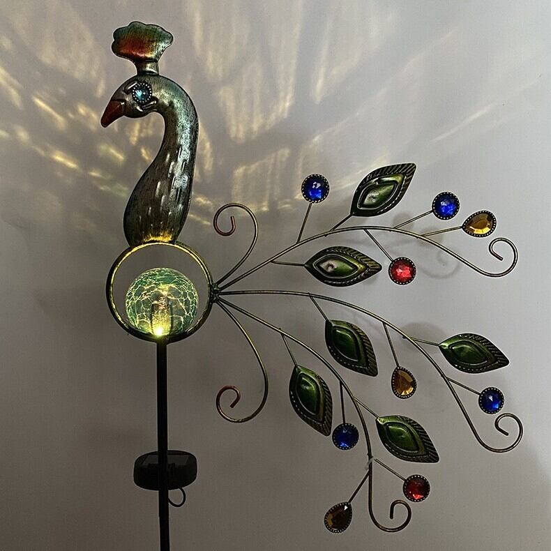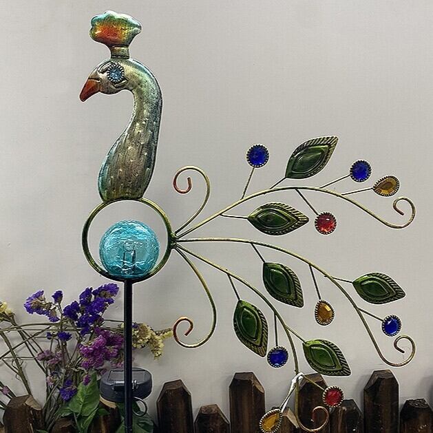 ガーデンライト 孔雀 庭 ソーラー カラフル 鉄 アニマル 鳥 ガーデンオブジェ ガーデンステーク ガーデニング 雑貨 ガーデン雑貨 ガーデンインテリア ガーデン インテリア 庭の装飾 お洒落 おしゃれ 8-14