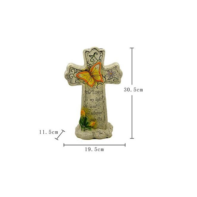 ガーデンライト 十字架 ヴィンテージ調 墓石風 樹脂 ソーラー 庭 クロス 太陽光 蝶 アイボリー ガーデニング 雑貨 ガーデン雑貨 ガーデンインテリア ガーデン インテリア 庭の装飾 お洒落 おしゃれ 8-14