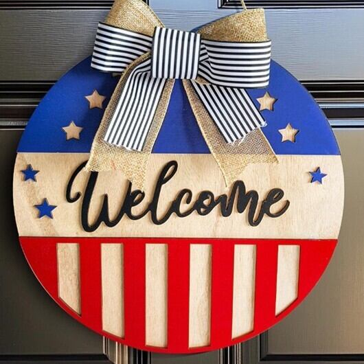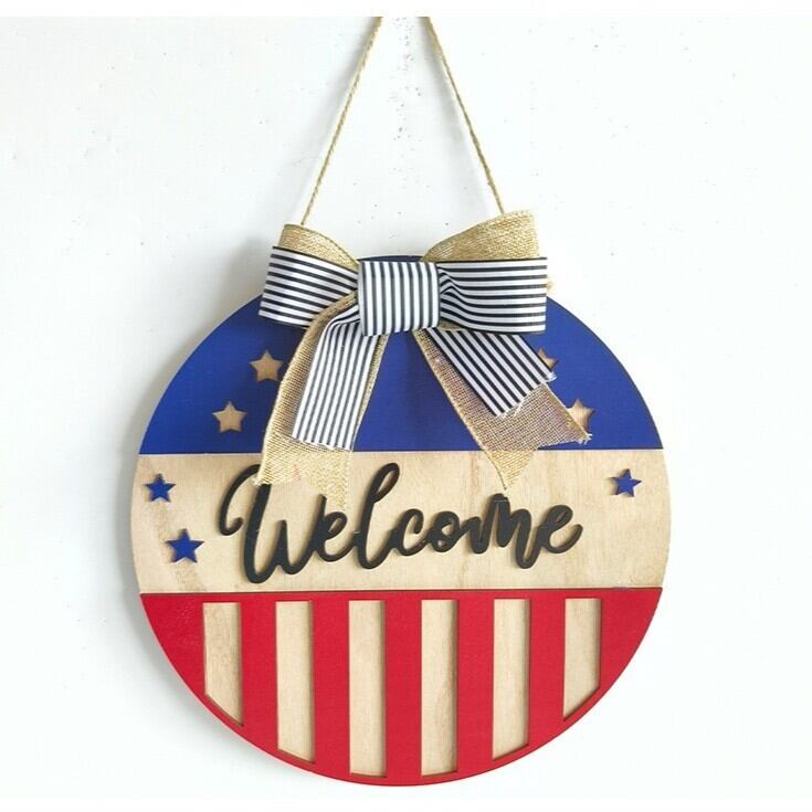 ガーデンオーナメント ドア飾り ウェルカムサイン 赤 青 木製 星 オブジェ アメリカ風 ガーデニング 雑貨 ガーデン雑貨 ガーデンインテリア ガーデン インテリア 庭の装飾 お洒落 おしゃれ 8-14