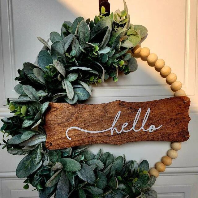 リース ガーデンオーナメント 木製ビーズ グリーン ガーデン ドア お洒落 かわいい 花 フラワー 庭 エレガント 壁掛け ガーデニング 雑貨 ガーデン雑貨 ガーデンインテリア ガーデン インテリア 庭の装飾 お洒落 おしゃれ 8-14