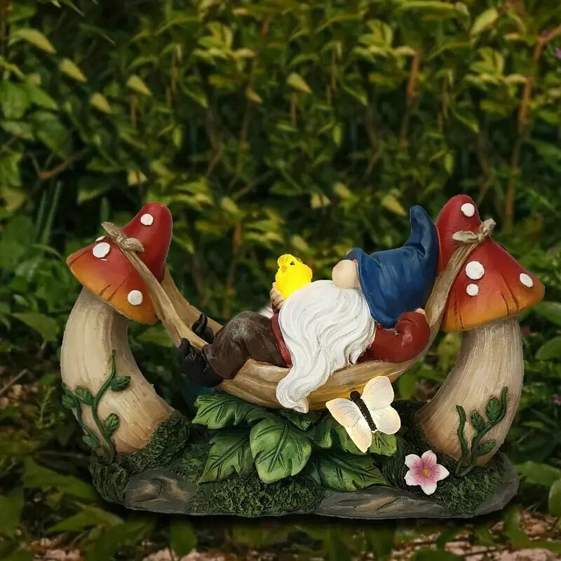 ガーデンオブジェ ノーム ソーラー 小人 鳥 キノコ 置物 ガーデンオーナメント ハンモック ガーデニング 雑貨 ガーデン雑貨 ガーデンインテリア ガーデン インテリア 庭の装飾 お洒落 おしゃれ 4-7